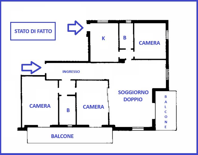 L’IMMOBILE SI PRESTA AD UNA DIVERSA DISTRIBUZIONE DEGLI SPAZI INTERNI, COME DA PROGETTI ALLEGATI NELLA SEZIONE PLANIMETRIA.