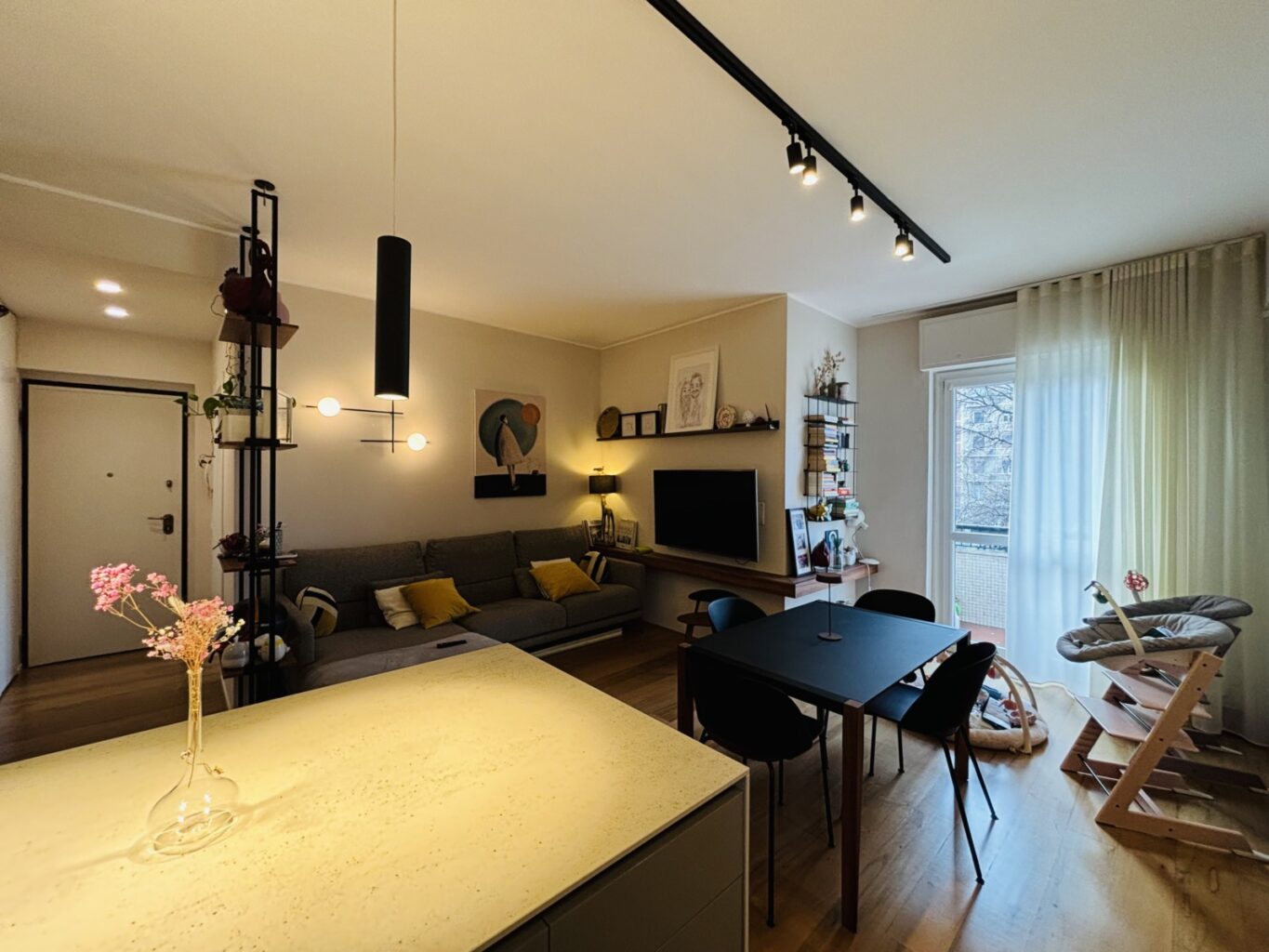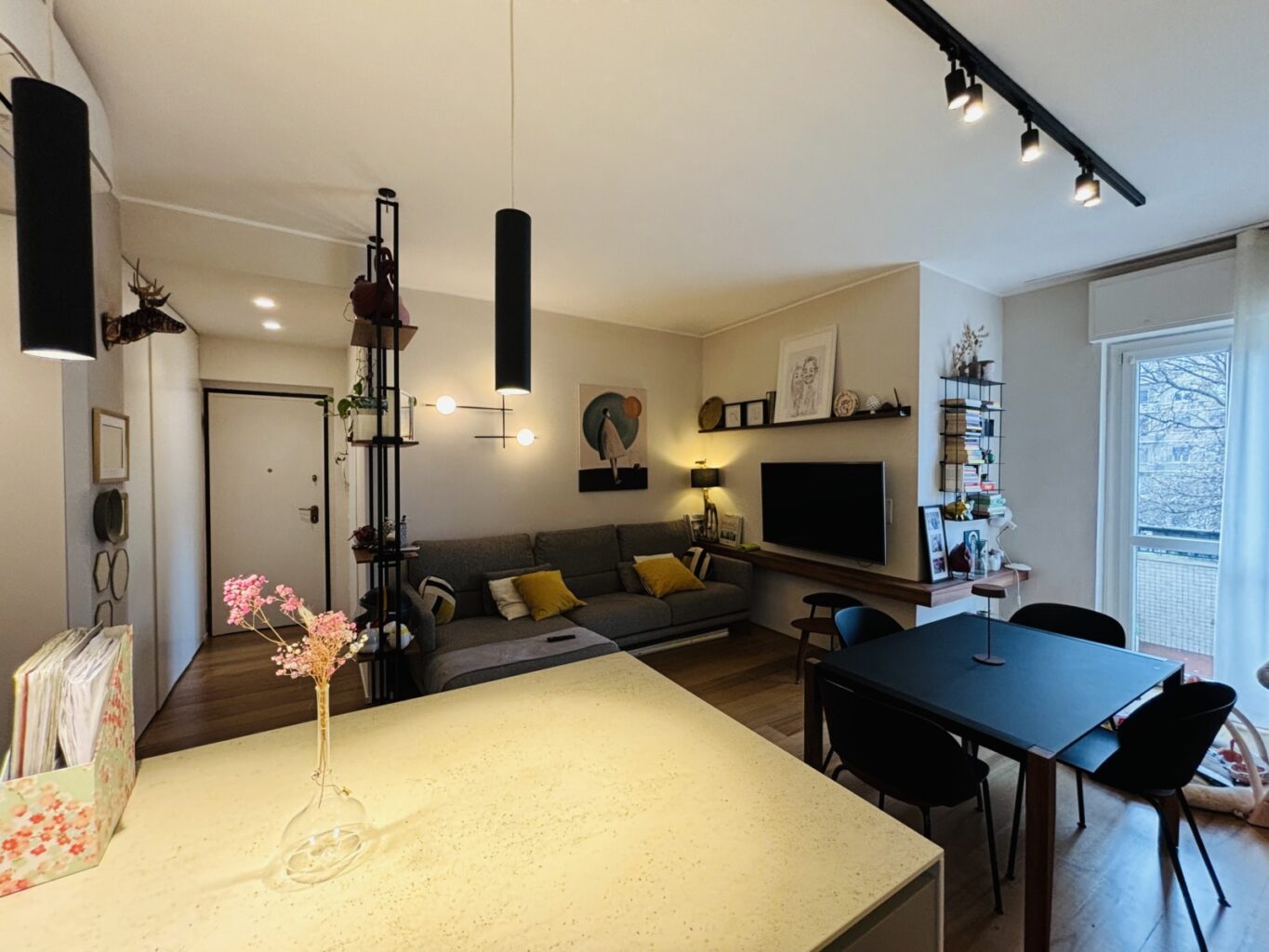 • Ampio soggiorno con cucina a vista e balcone